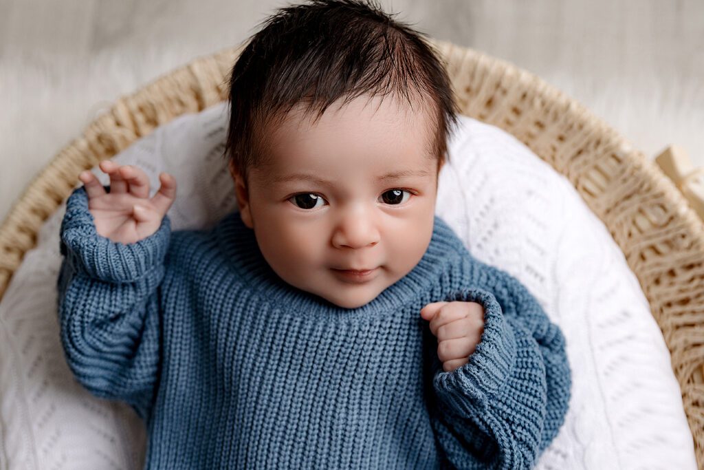 This handsome little guy’s parents requested some photos on a classic black background— a stunning choice that beautifully highlighted just how tiny he was in his parents’ arms. I love when parents request special ideas for their sessions– whether it’s a favorite color, meaningful prop, or a classic setup, customizing each session makes the images even more personal and memorable. Little baby E did such an amazing job for his newborn photoshoot!
